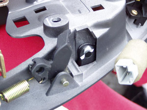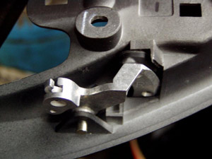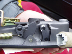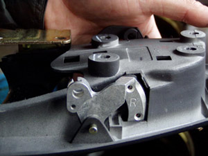 このアルミ製ドアリペアパーツは、純正品はプラスチックで破壊しやすく、必ずといっていいほど破損します。通常壊れると、アッセンブリーの交換になるので、とても高価です。純正品で片側定価24.500円、タイプR,Sでは32.600円もします。これは、この上記写真の部分がプラスチックで出来ているためASSY交換となるためです。この壊れやすい部分をアルミでつくり直しました。アルミをMC旋盤にて削り出しにて製作しており、高品質に仕上がっております。