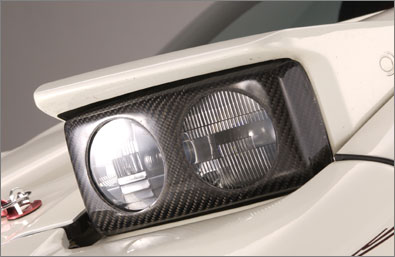 フロントフェイスを一変させる注目のアイテム。その存在感は目を見張るものがあります。通常仕様(OPフィン無し)ではしなやかに、そしてOPフィン装着すれば戦闘的に。サーキットに於いて冷却効率を高める設計としました。その効果はあなた自身が試して下さい。