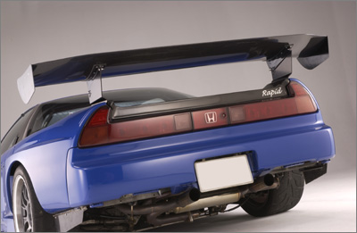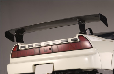 ワイドボディー車前提で作り上げられたこのWING、通称EAGLEは、その独特のバナナ形状により様々なレースカテゴリーでのロードラック&ハイダウンフォースを約束します。NSXの市販のGTウイングというカテゴリーにおいて、かつて無い迫力を貴方のNSXに・・・。