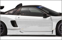 ノーマルのNSXでは、腰高にみえてしまう、こんな事に悩むのなら、是非サイドステップの装着をお勧めします。低いNSXをさらに低く見せます。もちろん機能性も重視。オリジナリティー溢れるこのサイドステップは、ワイドボディーにも対応。OP設定の専用カバー装着でレーシーさをUPさせることも可能。ステップアップに欠かせないアイテムです。